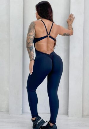 Be Fit Black Front Tie Scrunch Butt Jump Suit