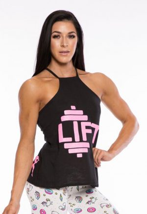 - High neck tank with lace up back